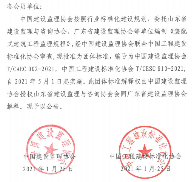 九游官方网站发布《装配式建筑工程监理规程》团体标准的公告