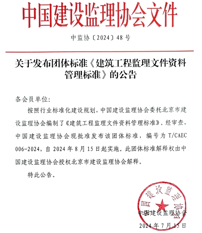 九游官方网站发布团体标准《建筑工程监理文件资料管理标准》的公告
