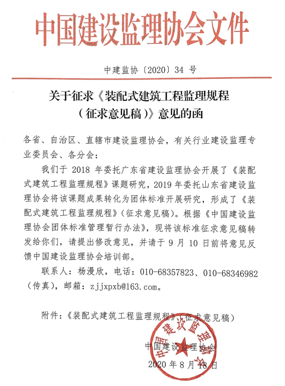 九游官方网站征求《装配式建筑工程监理规程(征求意见稿)》意见的函