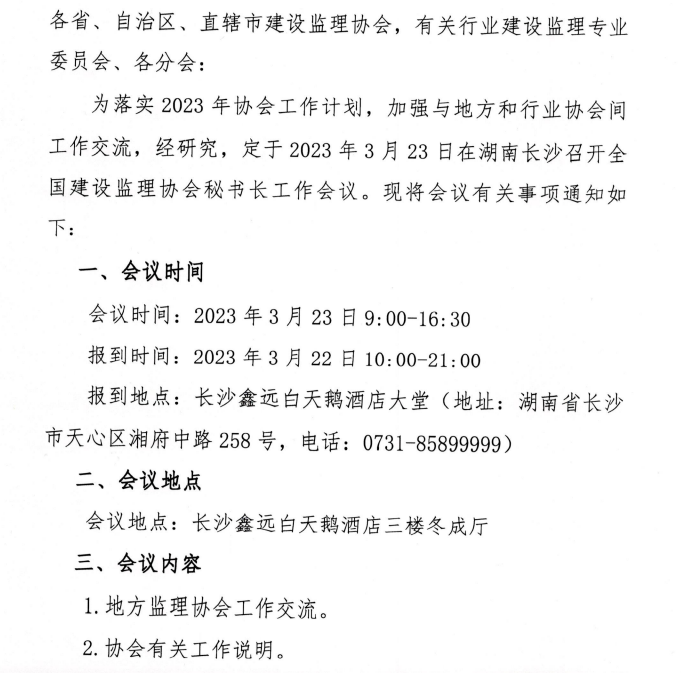 九游官方网站召开全国建设监理协会秘书长会议的通知