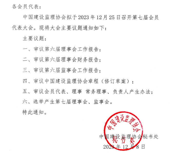 九游官方网站公布九游官方网站第七届会员代表大会议题的通知
