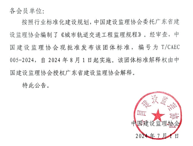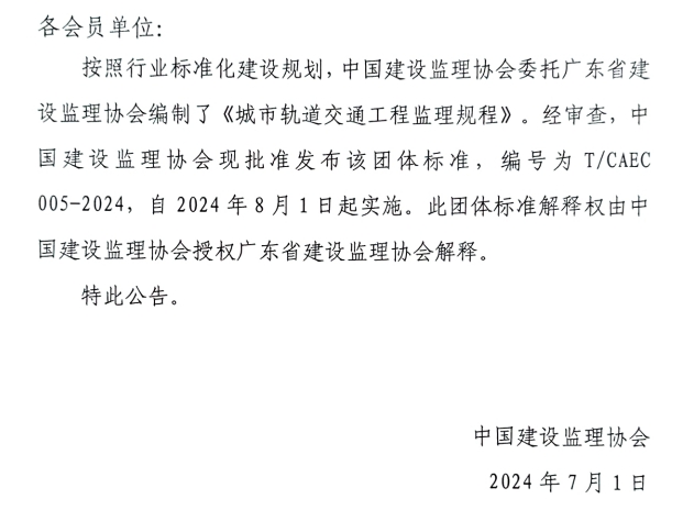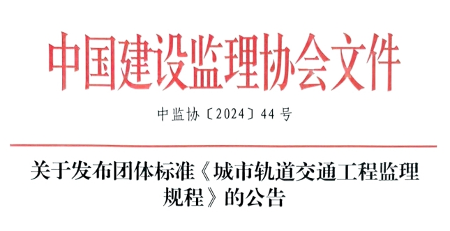 九游官方网站发布团体标准《城市轨道交通工程监理规程》的公告