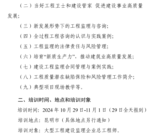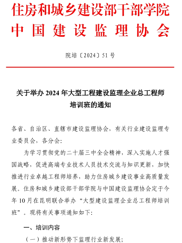 九游官方网站举办2024年大型工程建设监理企业总工程师培训班的通知
