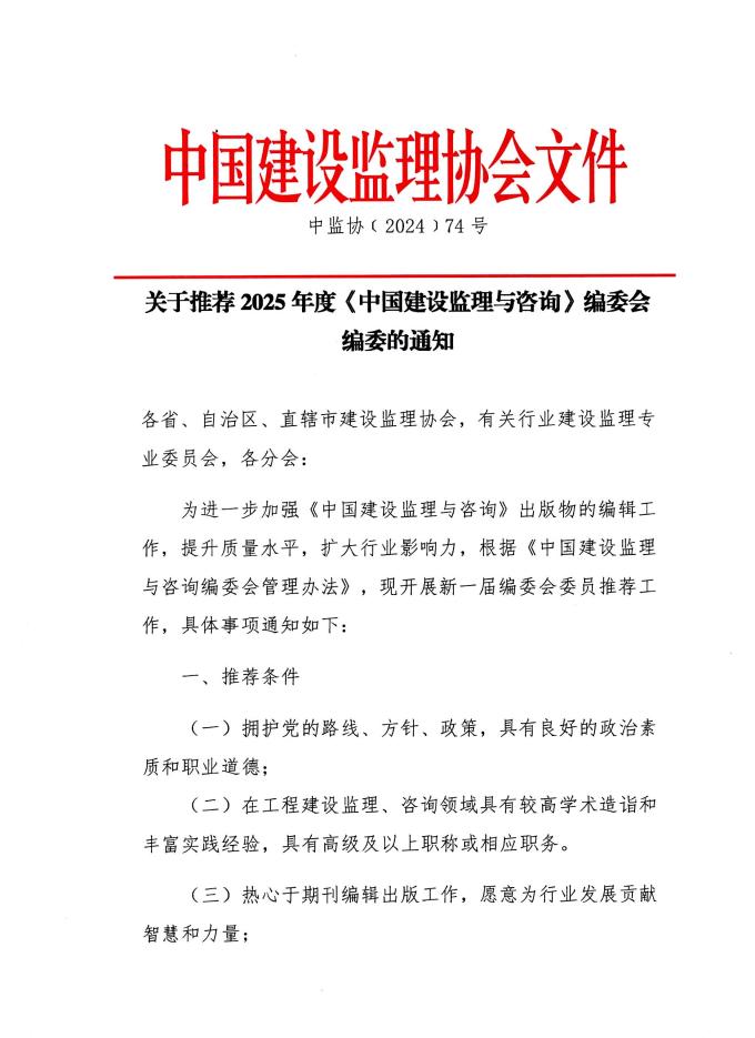 九游官方网站推荐2025年度《中国建设监理与咨询》编委会编委的通知