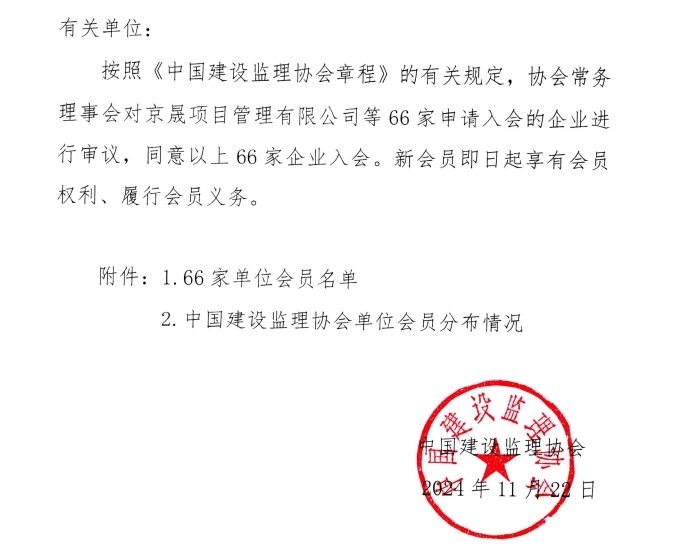九游官方网站同意京晟项目管理有限公司等66家企业入会的通知