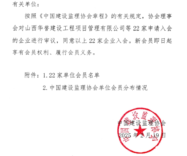 九游官方网站同意山西华誉建设工程项目管理有限公司等22家企业入会的通知