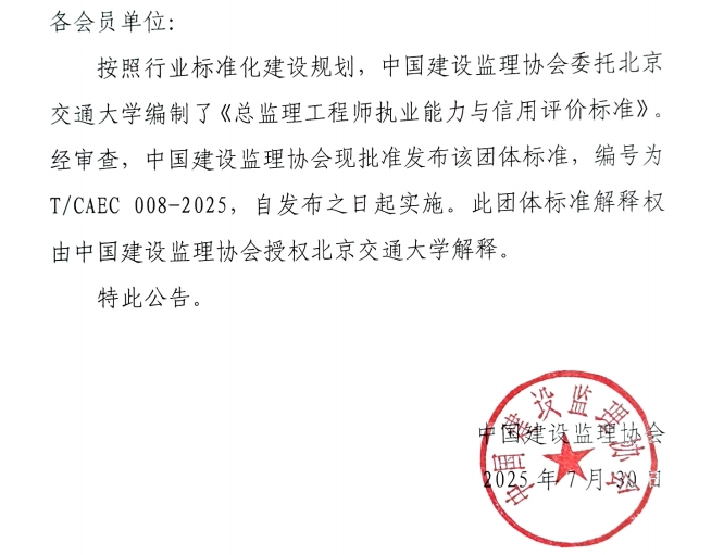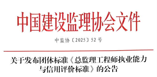 九游官方网站发布团体标准《总监理工程师执业能力与信用评价标准》的公告