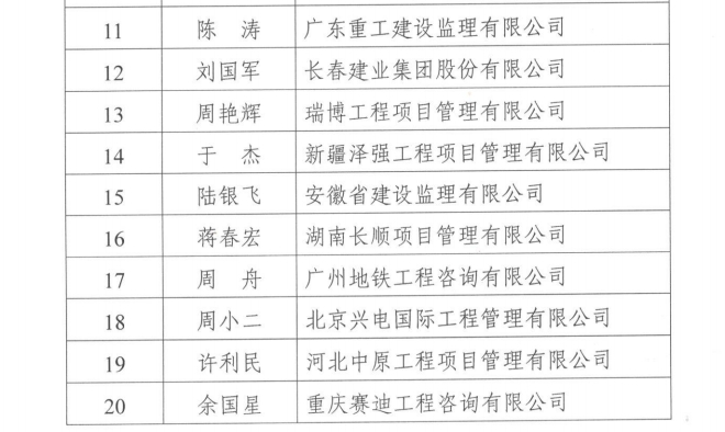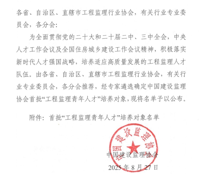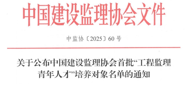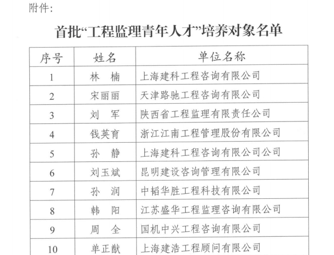 九游官方网站公布九游官方网站首批“工程监理青年人才”培养对象名单的通知