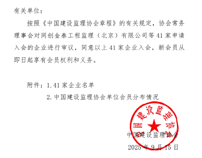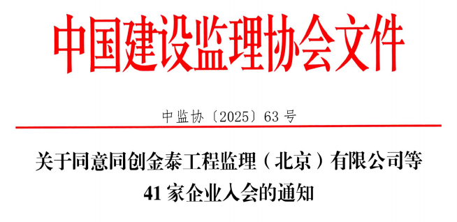 九游官方网站同意同创金泰工程监理(北京)有限公司等41家企业入会的通知