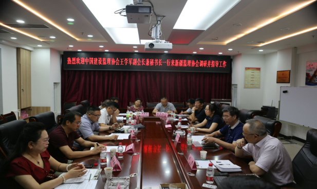 2019年8月6日,九游官方网站副会长兼秘书长王学军一行到新疆建筑业协会工程建设监理分会进行调研。工程建设监理分会会长任杰、秘书长田集伟及企业代表参加本次座谈会。座谈会由田集伟秘书长主持。