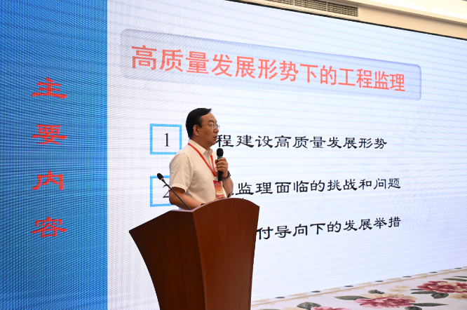 北京交通大学刘伊生教授以《高质量发展形势下的工程监理》为题,从工程建设高质量发展形势,工程监理面临的挑战和问题,价值交付导向下的发展举措等三方面进行授课。
