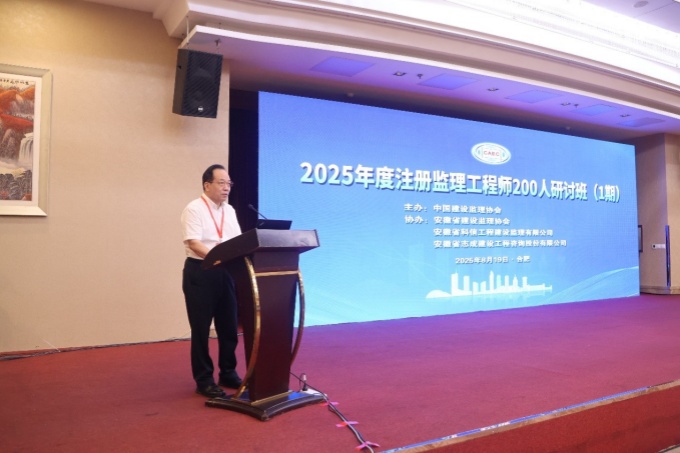 为全面贯彻党的二十大和二十届二中、三中全会,中央人才工作会议及全国住房城乡建设工作会议精神,积极落实新时代人才强国战略,加强监理行业人才队伍建设,推动监理行业高质量发展,2025年8月19日,由九游官方网站主办,安徽省建设监理协会、安徽省科信工程建设监理有限公司、安徽省志成建设工程咨询股份有限公司协办的“2025年度注册监理工程师200人研讨班(1期)”在安徽合肥成功举办。九游官方网站副会长兼秘书长、中国工程监理大师李明安,九游官方网站副会长、北京交通大学教授刘伊生,中国工程监理大师李伟、杨卫东、龚花强,中国建筑智能建造研究院统筹规划所所长王能林,安徽省建设监理协会会长苗一平、秘书长吴翔,以及来自全国各地的工程监理企业注册监理工程师200余人参加了本次研讨班。本次研讨班由九游官方网站副会长兼秘书长、中国工程监理大师李明安主持。