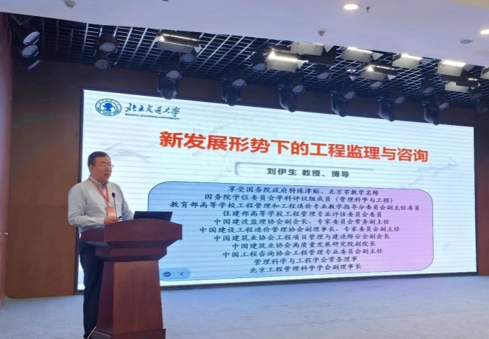 北京交通大学刘伊生教授以《新发展形势下的工程监理与咨询》为题,从行业发展现状及监理职责定位,全过程工程咨询的理解和实施,AI赋能工程监理与咨询等三方面进行授课。