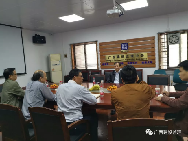 本会陈群毓会长向王早生会长简要汇报了广西建设监理行业发展现状;成立广西监理行业专家委员会及专家库,开展行业自律的情况;开展全过程工程咨询工作的总体情况;协助主管部门编制广西建设监理行业信用评价体系,维护监理行业市场秩序;汇报本会组织起草编写的《项目监理人员配置标准》《监理工作质量标准》《工程监理资料管理标准化指南》等三个课题的情况。? 王早生会长对本会开展的工作及取得的成绩给予充分肯定,并提出了几点希望:一是加强监理协会及行业的宣传,做了事要让大家知道,让社会更了解监理开展的工作以及发挥的作用;二是鼓励监理企业做大做强,在业务领域填空白、补短板,促进企业转型升级创新发展;三是肯定本会在行业自律取得成绩的同时,也要注意构建防火墙保护自身,对违约的企业要加大市场检查的力度和频次,震慑其认真履行工程质量控制和施工安全管理等法定监理职责;四是认为要正视问题,明确监理前进方向,促进行业健康发展。