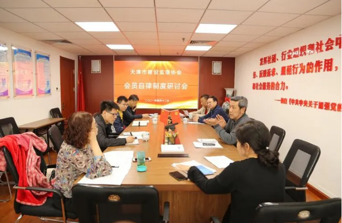 2021年4月12日,天津市建设监理协会召开会员自律制度研讨会,自律委成员王兆力、华泽军,协会监事石嵬以及路驰监理、电力监理、五岳监理等企业负责人参加会议,会议由协会副理事长兼秘书长马明主持。