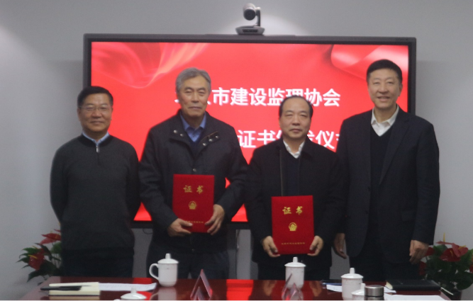 座谈会前,张铁明会长为李明安和杨宗谦同志颁发了北京市建设监理协会名誉会长证书。他代表北京监理协会对两位领导多年来为北京监理行业发展做出的奉献表示感谢,期望在两位领导的持续支持下,北京监理行业能够再创辉煌。