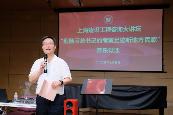 作为上海建设工程咨询大讲坛系列讲座重要组成部分,今年是第三次举办音乐党课。与以往不同,这次活动特邀上海黑胶文化专委会秘书长、上海市中外文化艺术交流协会办公室副主任沈莉,作题为《“谁不说俺家乡好——追随习总书记的考察足迹听地方民歌”》音乐党课专题讲座。此次沈丽女士携带珍藏多年的黑胶唱片,以现场播放唱片的方式,向观众呈现了黑胶唱片独有的原始音色,独具匠心地将黑胶艺术与红色精神相融合,展现了一种别样的艺术魅力。本次活动还邀请到了上海交响乐爱好者协会副会长、沪上著名乐评人李严欢莅临现场,共同学习和聆听。活动由协会秘书长徐逢治主持。