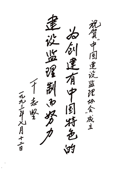 时任建设部常务副部长干志坚为协会成立题词