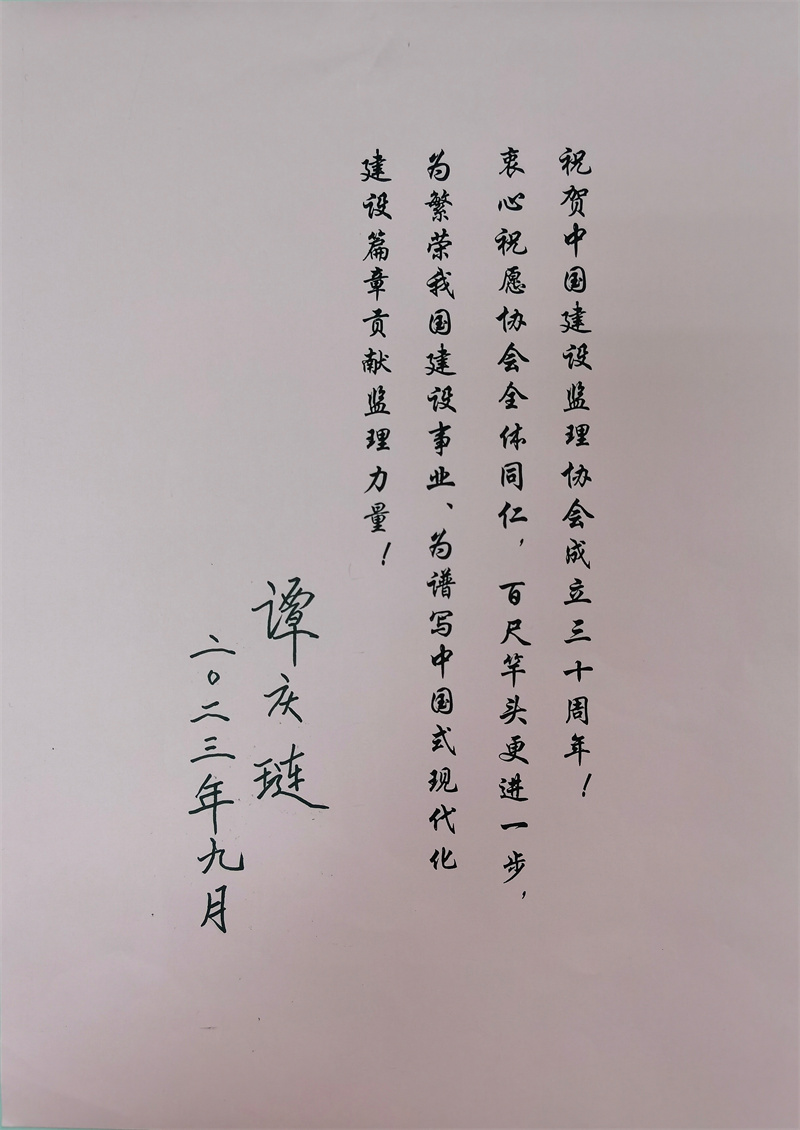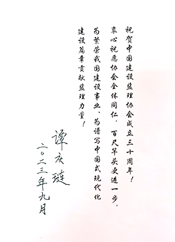 原建设部副部长、协会第一届理事会会长谭庆琏为协会成立30周年题词