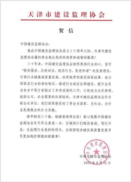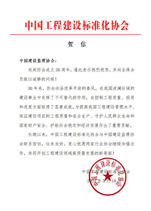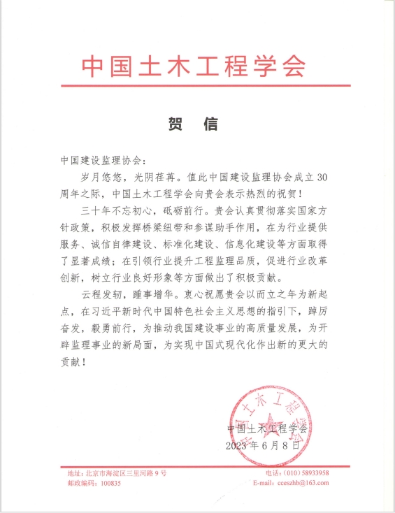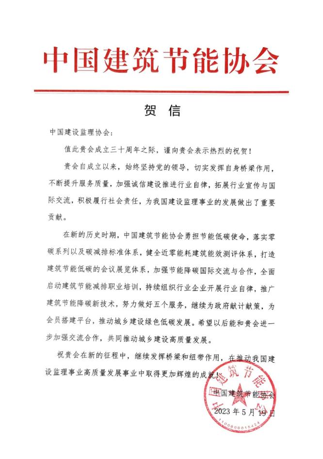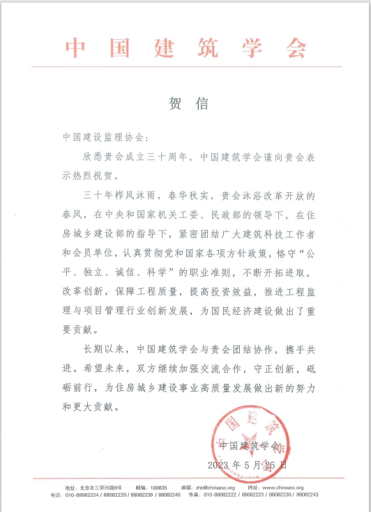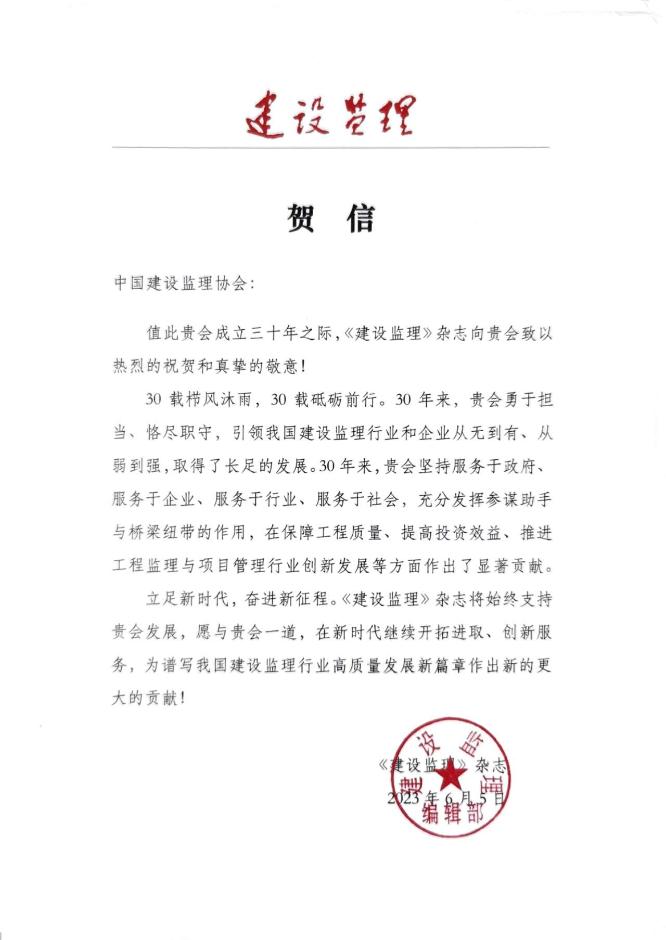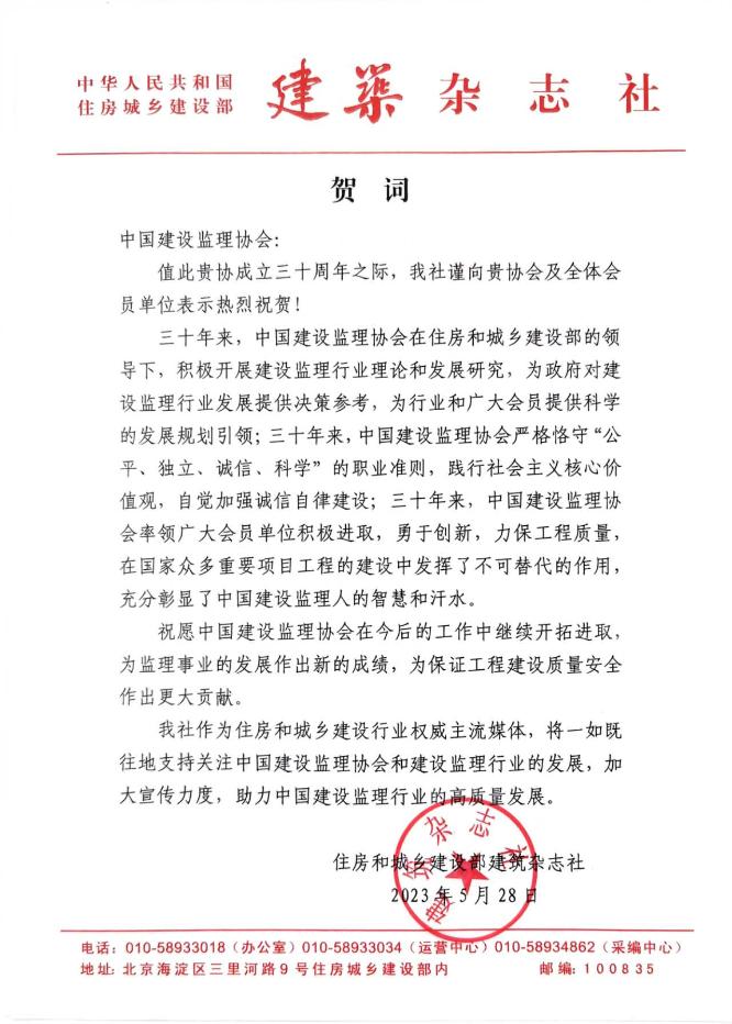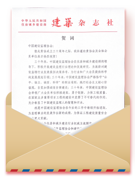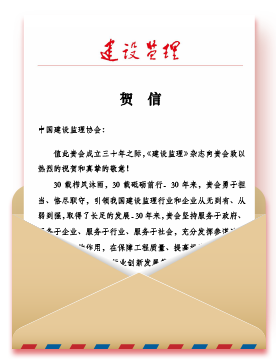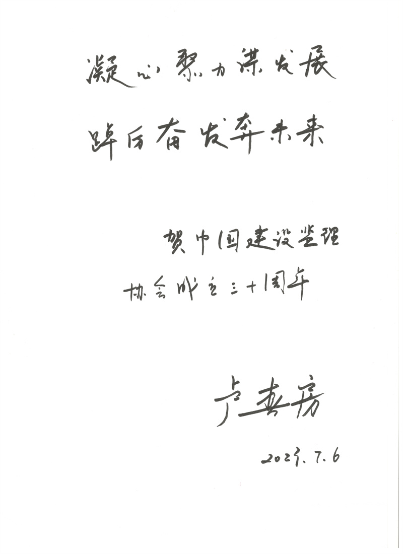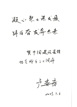 中纪委驻住房和城乡建设部纪检组原组长、原建设部总工程师、协会第一届理事会常务副会长姚兵为协会成立30周年题词