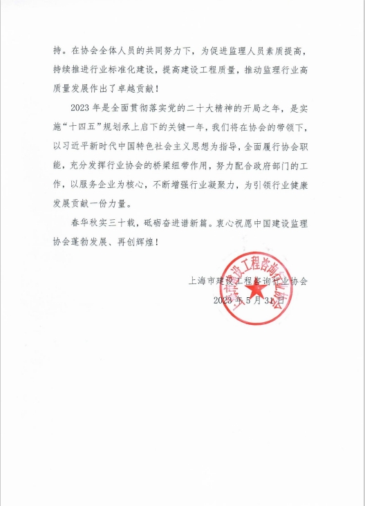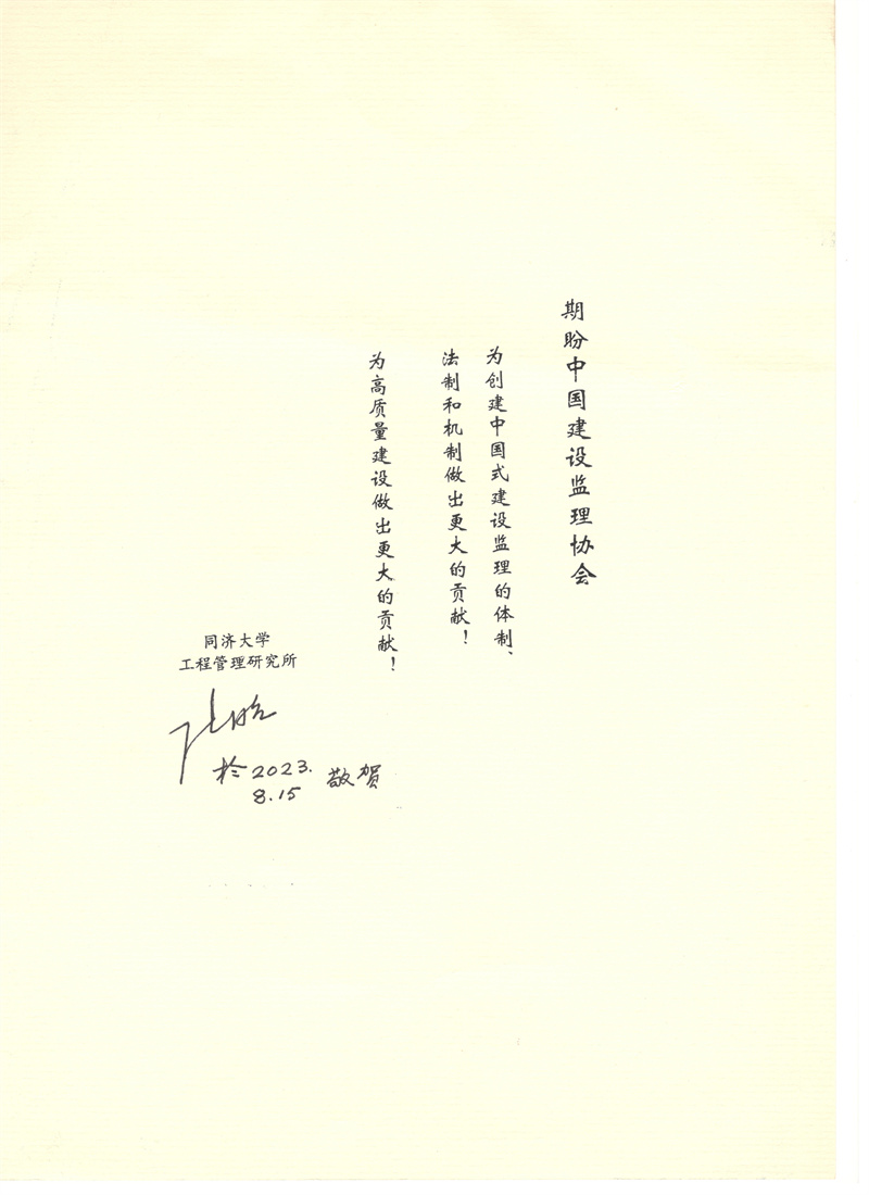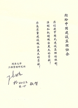 同济大学工程管理研究所创始人、名誉所长丁士昭为协会成立30周年题词