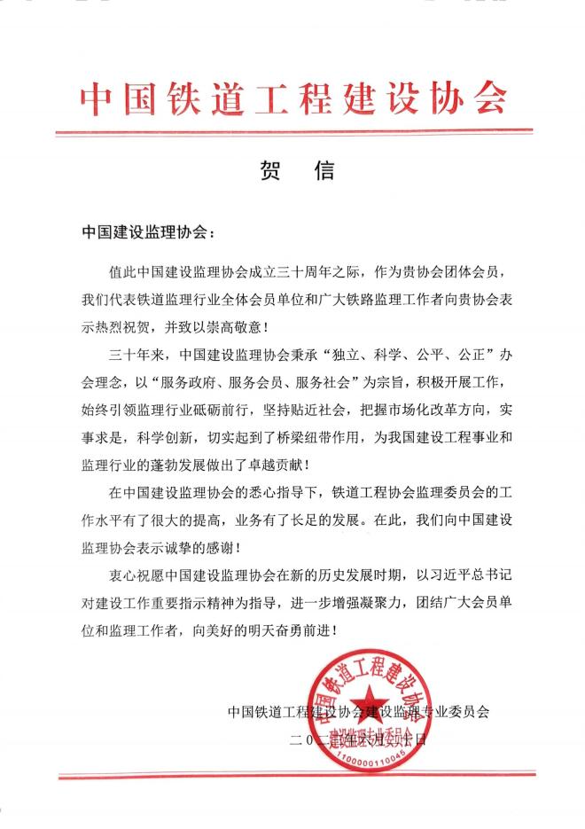 原铁道部副部长、中国工程院院士、协会第三届理事会副会长卢春房为协会成立30周年题词