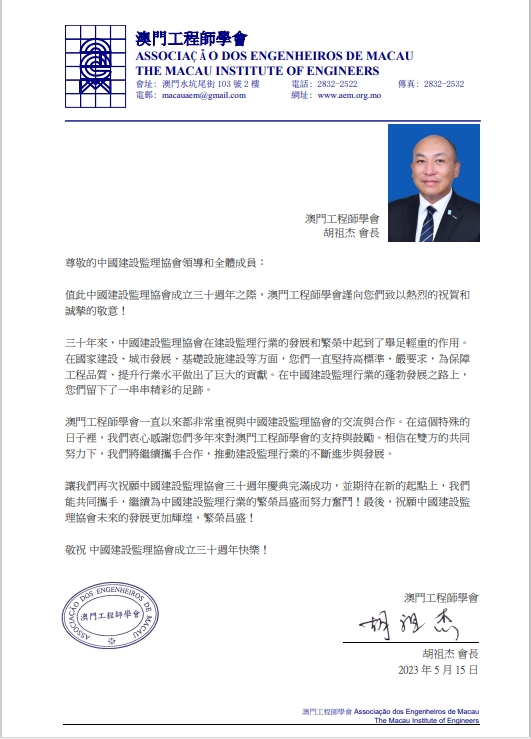 10月8日,澳门工程师学会会长胡祖杰一行来访九游官方网站,就内地与澳门地区工程监理行业的发展现状、未来发展进行了交流,并签署了合作备忘录。